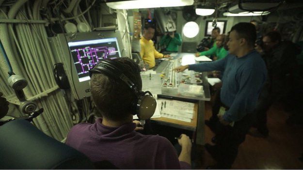 تماشای عملیات نیروی دریایی آمریکا از این فاصله نزدیک مهیب و ترسناک است. هیچ نیروی دریایی دیگری در جهان چنین تسلیحات و تجهیزات پیشرفته ای ندارد.