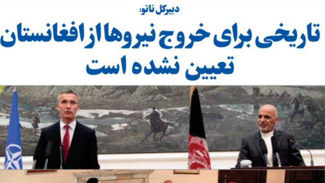 روزنامه ماندگار نیز نوشته است که در سفر دبیرکل ناتو به کابل رئیس جمهور غنی و آقای استولتنبرگ تاکید کردند که پایان ماموریت جنگی ناتو در پایان سال ۲۰۱۴ به معنی قطع روابط نخواهد بود، بلکه ناتو در آموزش و تجهیز نیروهای افغان سهم خواهند گرفت.